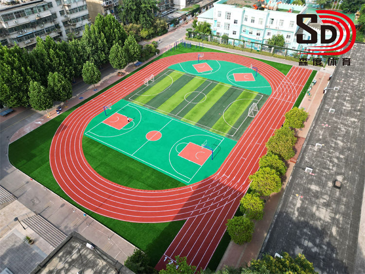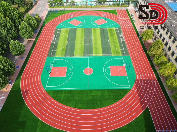 工程内容:13mm透气型跑道及5mm硅PU球场